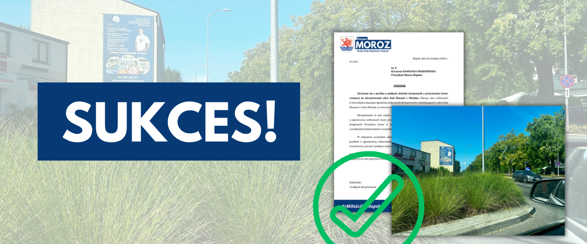 Z wielką radością chciałbym podzielić się z Państwem pozytywnymi efektami mojej interwencji, która dotyczyła poprawy bezpieczeństwa na skrzyżowaniu ulic Nad Śluzami i Wiejskiej w Słupsku. To miejsce, znane z licznych kolizji, stało się problematyczne z powodu ograniczonej widoczności spowodowanej przez rozrośniętą zieleń. Kierowcy mieli trudności z dostrzeżeniem nadjeżdżających pojazdów, co wielokrotnie prowadziło do niebezpiecznych sytuacji na drodze.